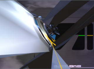 In this experiment I've built a 'prison' out of six virtual cameras, containing an aggressive object, a rocket trying to get out. All cameras are orthagonal to the next looking inward, in turn producing a cube. Together all six cameras jail the rocket as it toils forever trying new trajectories indefinitely.