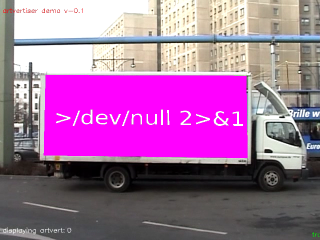 So far the software component is coming along well. It is already possible to perform live substitution of billboards with images, 3D models or movies when seen through a sufficiently good camera. To get this far I've written a C++ application ontop of the excellent image tracking library Bazar that supports substituting the detected image with an OpenGL surface upon which I can draw video (live or from file) or static imagery.