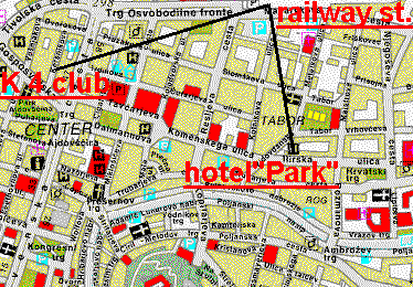 railway station is on top, club is left, and hotel on the right....