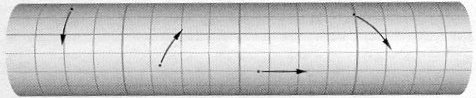Point particles moving on a cylinder.