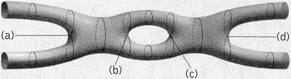 The quantum frenzy can cause a string/antistring pair to erupt (b) and annihilate (c), yielding a more complicated interaction.