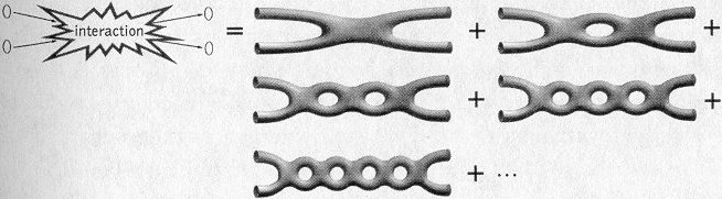 The net influence each incoming string has on the other comes from adding together the influences involving diagrams with ever more loops.