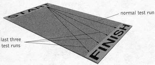 Due to the glaring late-afternoon sun, Slim drove at an increasingly greater angle on the last three runs.