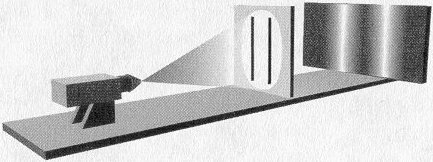 Newton's particle view of light predicts that when both slits are open, the photographic plate will be a merger of the images in Figures