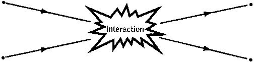 Two particles interact—they "slam together"—and cause the path of each to be deflected.