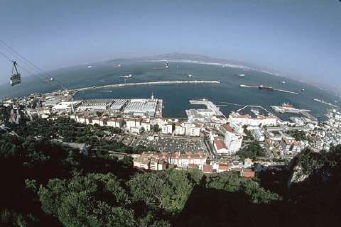 View to the town, harbour and ship docks from the Upper Rock .