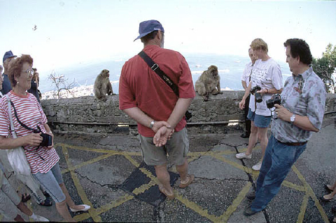 bb-gbr-068.jpg Apes Den (Queens Gate) one has the rare opportunity of seeing free-ranging monkeys at close quarters. The apes are tailless, known as Barbary Macaques and together with the ones in Morocco and Algeria (where they are found wild) are the only free-ranging ones in Europe. Since 1915 the Government of Gibraltar is taking care of them and feeds them. The friendly Apes have lived in Gibraltar for over two centuries.