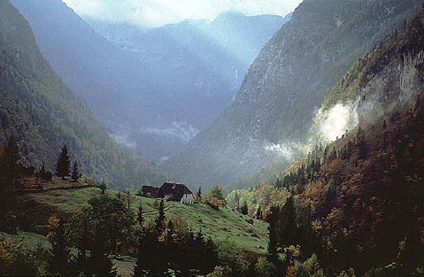 Dolenjska region in the South of Slovenia. Town of Kostanjevica is built on the island in the middle of Krka river.