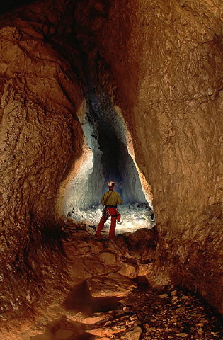 Caver Ziva Tavcar in 'Logasko brezno' cave near Logatec.At the end of the year 2001 Slovenia had 7730 registered and researched caves.