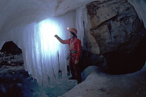 Caver Ziva Tavcar in the 'Markov spodmol' cave near Postojna. At the end of the year 2001 Slovenia had 7730 registered and researched caves.