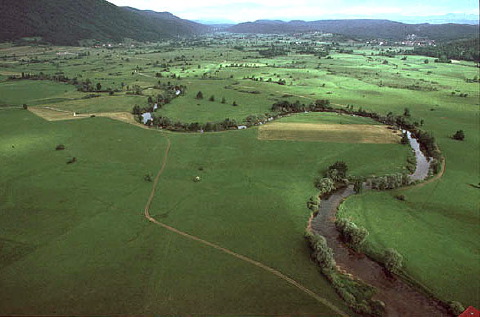 The meanders of stream on Blosko polje. Karst region.