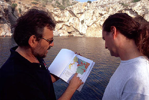 Luigi Casati, Marc Douchet, Christian Moré and Michel Philips discussing the complex labyrinth of the submerged cave.