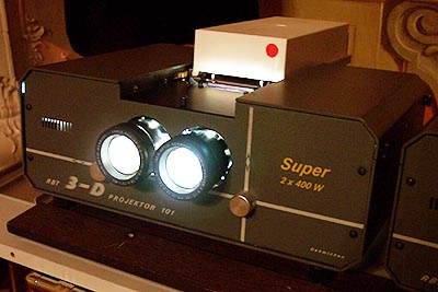 - Diapozitive ali digitalne posnetke projeciramo skozi pravokotno postavljena polarizacijska filtra na metalizirano platno, ki ne depolarizira svetlobe in slike opazujemo s pomočjo očal z enako postavljenima filtroma. Podobno velja za video projekcijo s pomočjo video projektorjev.