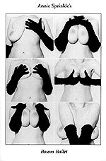 Annie Sprinkle je bivša prostitutka in nekdanja porno zvezda, ena največjih v zgodovini porno filma. Danes je multimedijska post-porno modernistka. Njena tema je seks. Seksualno cenzuro označuje za neartistično in nehumano in meni, da sebe lahko omogočimo edino s seksualnim pozitivizmom. Za svoje delo pravi: "To ni pornografija. Bila sem vpletena v pornografijo, zato poznam razliko. To je umetnost - telesna, intelektualna, feministična, konceptualna, gledališka. Govori o aidsu, o različnih konceptih spolnosti, o marsičem ..."