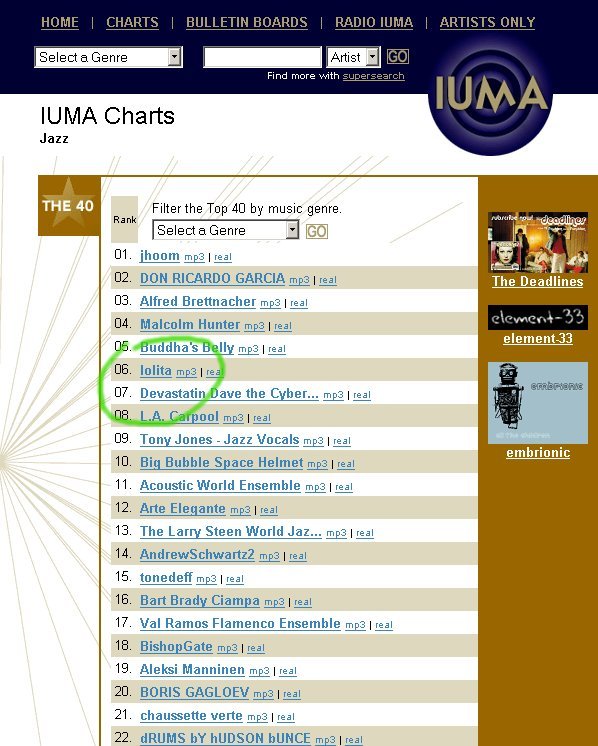 6th position at September 004 IUMA Jazz Chart