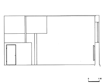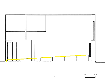 wooden floor ; wooden construction, chip boards, interactive sound system (pick-ups, computer, synthesizer) dimensions of space : 5.60m / 8.30m / 4.50m site generated sound intervention collaboratior : Kees van Zelst, composer Rijksakademie van beeldende kunsten, 1995 |