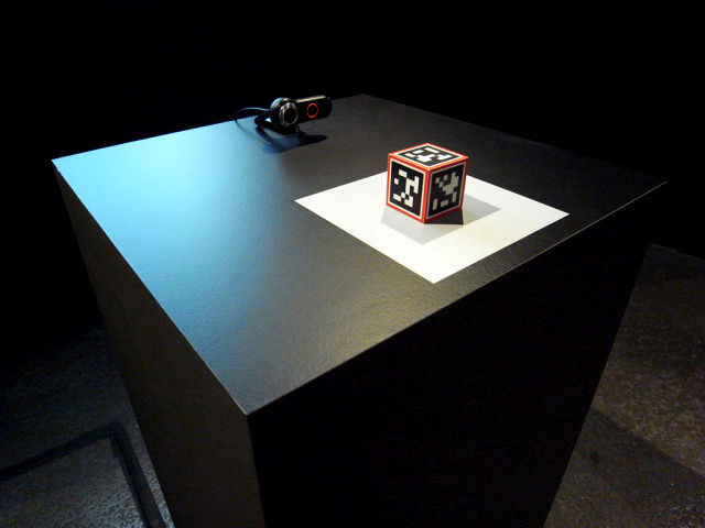 attempt to use screens in a hand-held cube for the following reasons: Six 5cm LCD screens at 1cm depth each would require the cube is much bigger to accomodate the inset frames and housing. This would leave a maximum space of 6x6x6cm inside the cube to fit a >=2GHz computer with a powerful graphics card, battery, cooling fans and a 3D accelerometer (like that in the WiiMote). Such a computer does not exist currently. Furthermore, a camera equivalent in quality to the EyeToy would need to be on each side of the cube in order to track the face of the viewer. Unless the computer can know where the eyes of the viewer are there would be no sense of being able to 'see around the corner' and therefore no illusion of the rooms being somehow inside the cube. Instead, the player would merely be turning a series of small screens in their hand, each with a 'flat' and unshifting room (ie as static as a printed image). A solid cube, webcam and a desktop computer is a robust and elegant solution. It takes high-temperature, expensive, fragile, high-tech electronics out of the picture, leaving just a person and a solid object as the control interface. Software used Platform History While containing no game-play or avatar, Unprepared Architecture will continue to be developed as an experiment in augmenting architecture on a site-specific basis. |