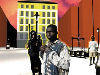 For the duration of May, 2007, Iraqi born artist Wafaa Bilal will live in the FlatFile Galleries in Chicago. The public can watch him 24 hours a day over a live webcam; and if they choose, visitors to his website can shoot him with a remote controlled paintball gun.