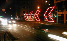 Via wmmna: "Although the computer games always try to imitate the physical world there are always elements, objects and behaviours which only exist in the virtual world. Speed, by Aram Bartholl, is one of those projects that bring virtual game elements right on to the street. Bartholl aims to install the big flashing arrows from the computer game Need for Speed Underground 2 to real space."