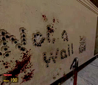 Not a Wall is an unscripted performance piece I conducted in Half-life 2 back in July 2006 and is based on Magritte's The Treachery Of Images. The work's protagonist will not attack unless attacked and must return to the graffiti until complete. The final killer, inspired by my actions, falls fowl of his own passivity. Not a Wall is one of a series I’ve produced for a soon to be completed research degree on game surveillance technologies and techniques.